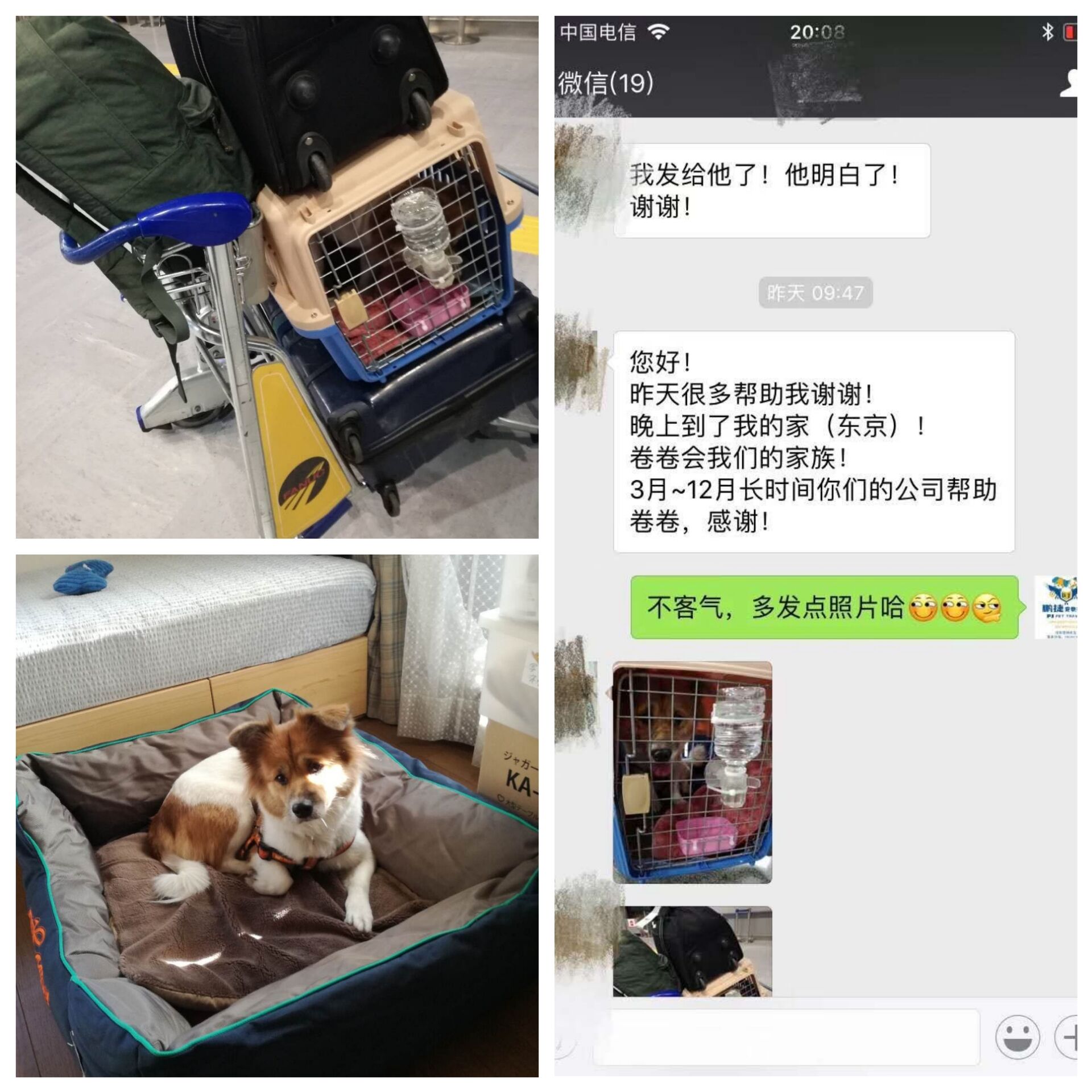 7、乘机当天还是很紧张,生怕在机场出现不让放行和入境的情况,WWW.青青草原托运公司安排了外勤在出境机场全程协助办理,顺利送狗狗上飞机,到达东京后出示文件,顺利放行,没有隔离!