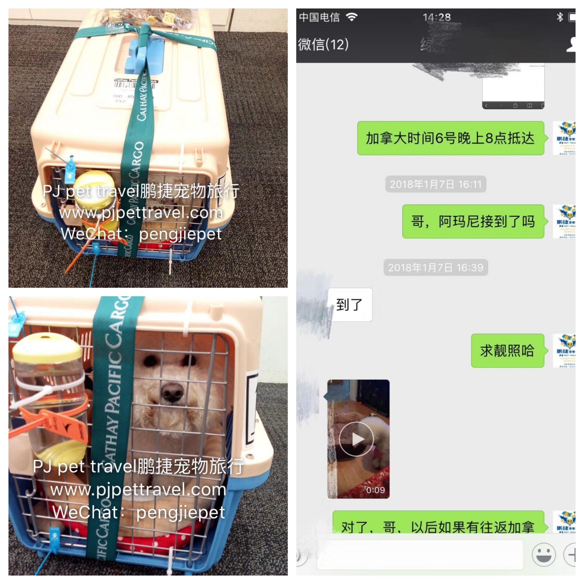 主人提前到达多伦多工作,每天恋恋不忘在国内的小可爱比熊。后来主人委托WWW.青青草原单独运输宠宝到多伦多,南京--香港--多伦多,顺利抵达。
