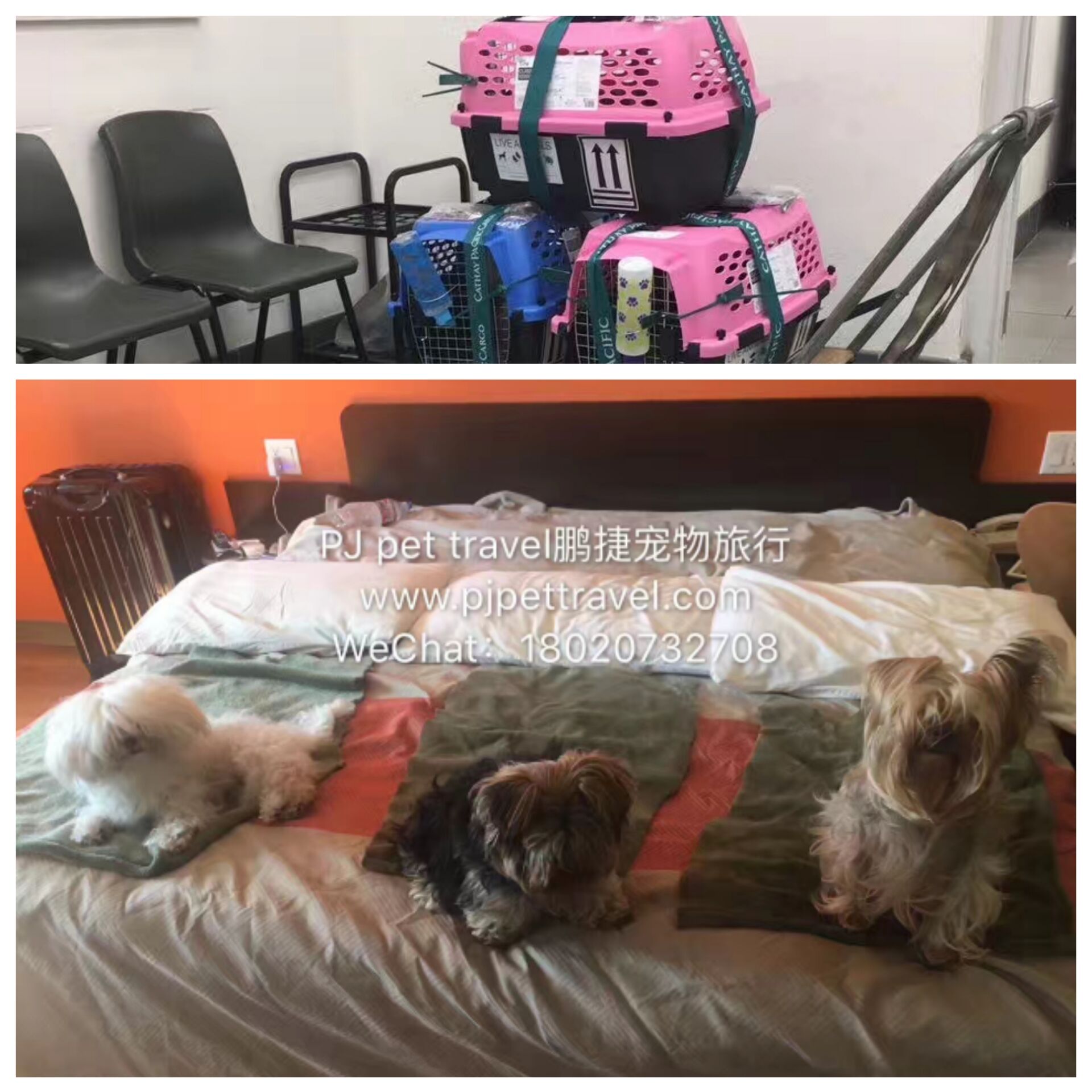 主人在美国纽约喂养的三只狗狗要带回国,由于入境国内一个人只能带一只宠物,主人决定三只一起发货运到香港,经香港转运青岛。