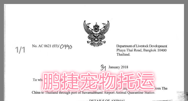 泰国对于所有入境的宠物都要求申请入境许可,只有提前申请才可以入境,需要到泰国农业部动物卫生处网站申请,并发邮件提交入境申请,填写泰国入境AC0621表格,泰国农业部同意后会回复邮件和入境许可扫描件。