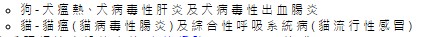 -狂犬病疫苗、犬瘟热、犬病毒性肝炎及犬病毒性出血肠炎,猫猫要注射狂犬、猫瘟及综合性呼吸系统疾病。